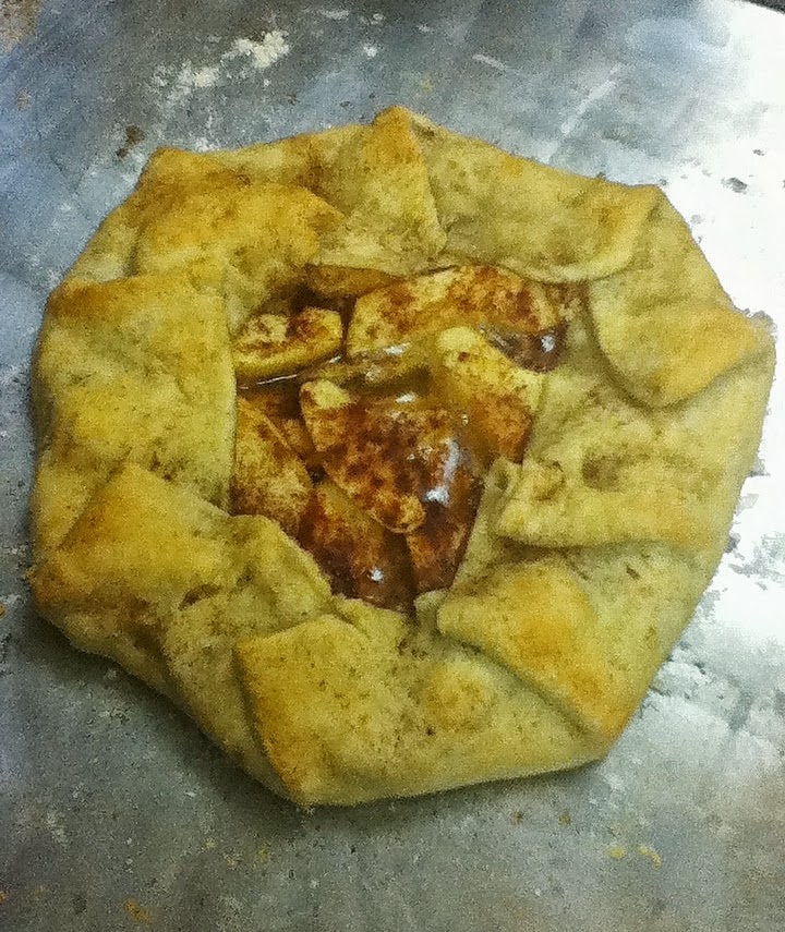 All you need to do is lay out the pastry on a cookie sheet, layer apples on top, sprinkle with sugar/brown sugar/cinnamon, put several small chunks of butter spaced out on top of the apples, and then wrap the edges of the dough up around the apples. Bake at 400 degrees F for 15 to 20 minutes!