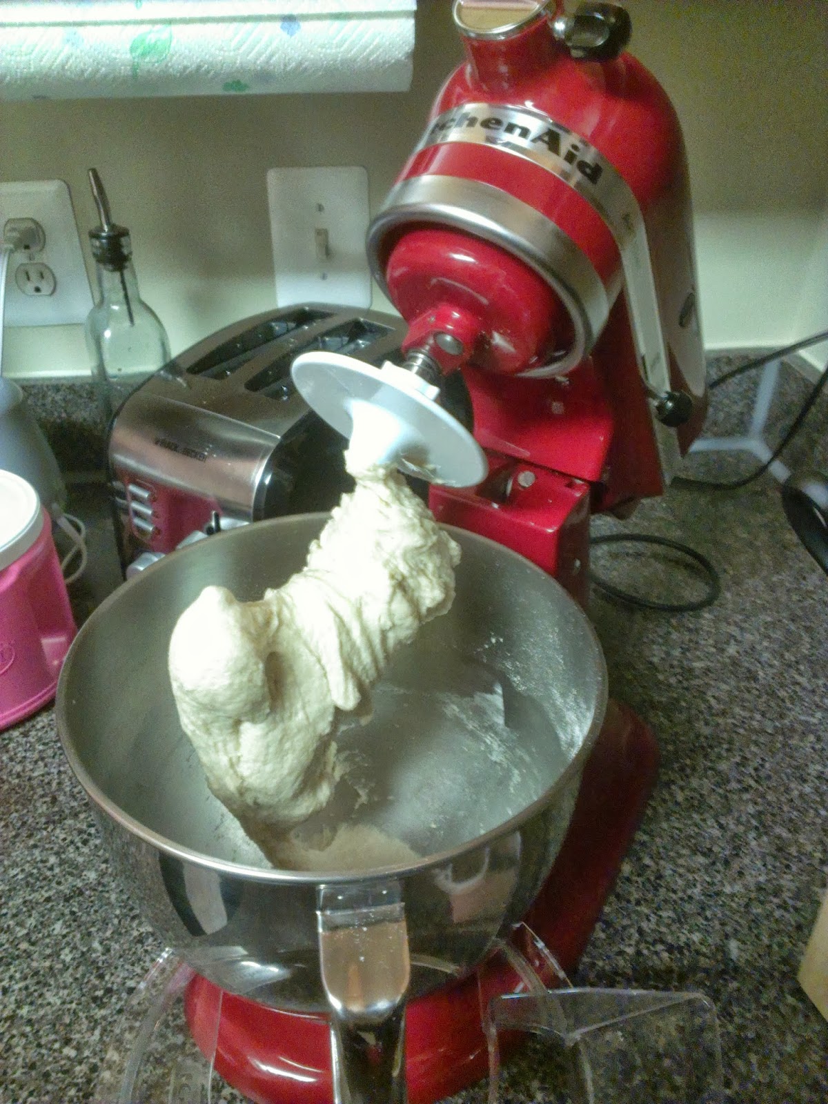 Kneed the dough for about 10 minutes either with your electric mixer, or by hand.
